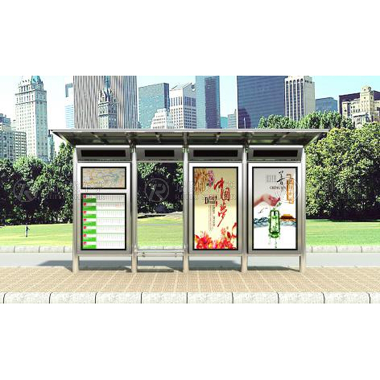 一般采用不銹鋼為框架,鋼化玻璃或者耐力板為面板,鋁合金為頂棚,面板可以打開更換宣傳畫面。